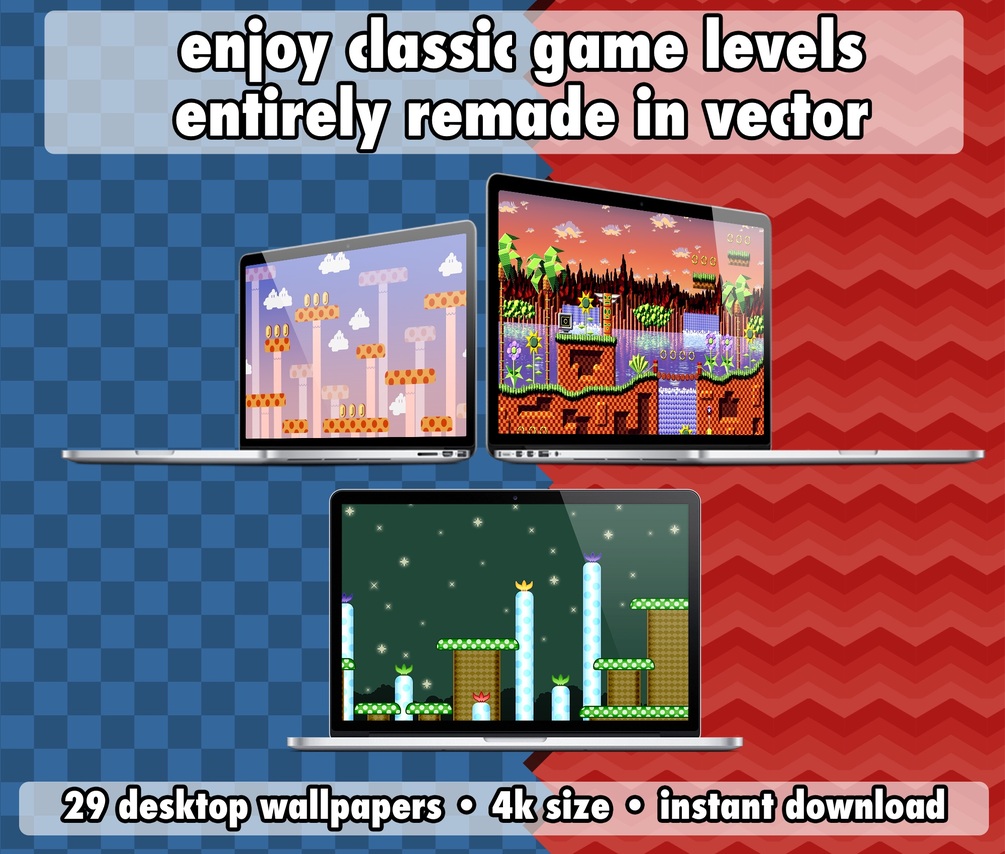 This mega package contains a collection of high quality images referencing classic levels from Mario and Sonic.