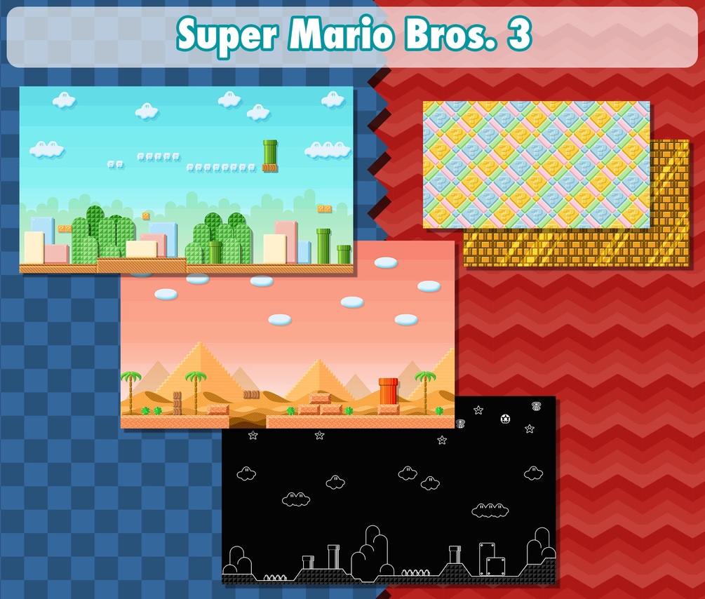 This mega package contains a collection of high quality images referencing classic levels from Mario and Sonic.