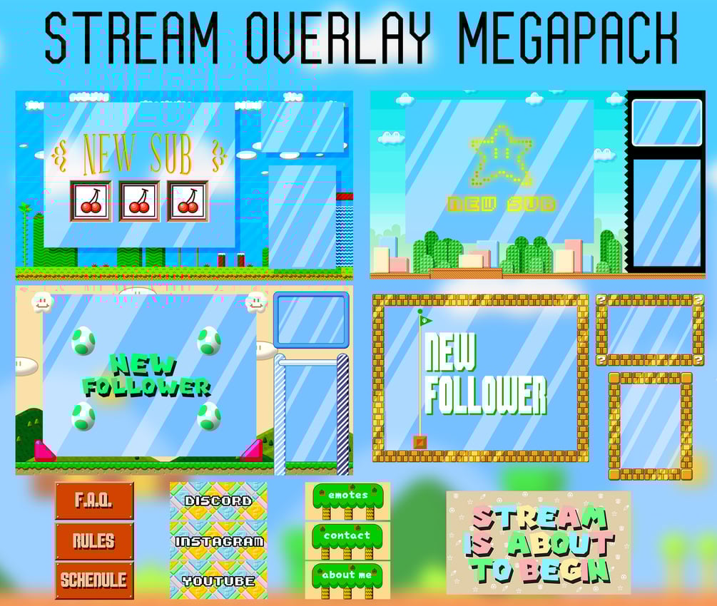 stream overlay mega package : Super Mario Bros. & World