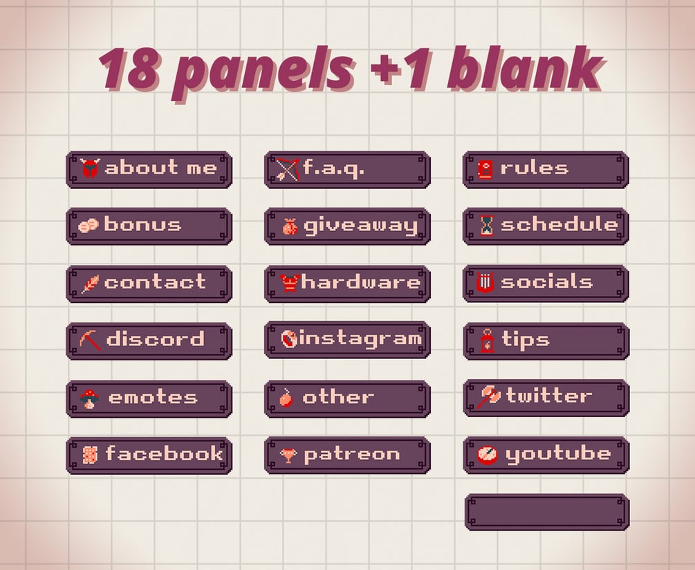 The package contains overlay for streaming such as twitch. It is inspired by 8 bit RPG video game aesthetics.